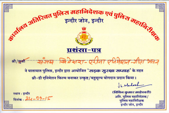 Commendation Certificate from PRTS three times for AV film to 17 student members, IMA Animation Maestro-Total 55 Awards in Animation, Vfx & Script Writing & Contracts by Indore Management Association(2011-2019), Commendation Certificate from RRCAT for AV Film on Laser Additive Manufacturing, Short film Smiley got recognition by MY Blood Bank, Best Film Award at 48 hours Film Project, Indore for Short film D4Dance, Student Alumni got Award at Fluidian Contest, Save a Life Contest Award by Traffic Police, India Social Responsibility Film Festival organized by SIRF & Rotary Club , Several Recognition to Students on Painting, Graphic Collaterals for Traffic Police & Citizen Cop Mobile App, Jain Grantha like Satya Muskura Raha Hein, Satya ki Khoj, Cover Pages